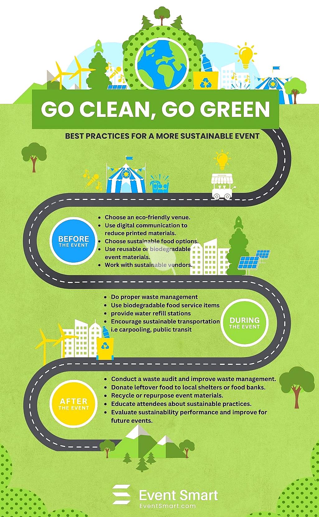 - Example: Switch to e-tickets and provide compost bins throughout the venue.